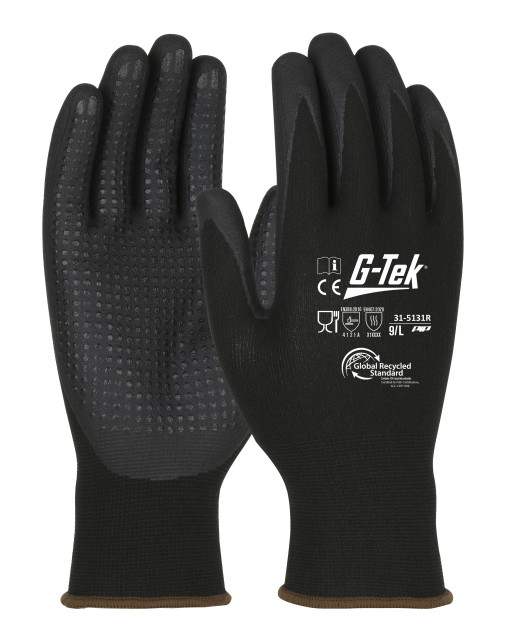 - Bezšvové pletené zmesové podšívkové vlákna vyrobené z 90 % recyklovaných PET fliaš na vodu a 10 % elastanu pre pohodlie, zručnosť prstov a priedušnosť, 60 % hmotnosti rukavice je vyrobených z recyklovaného vlákna